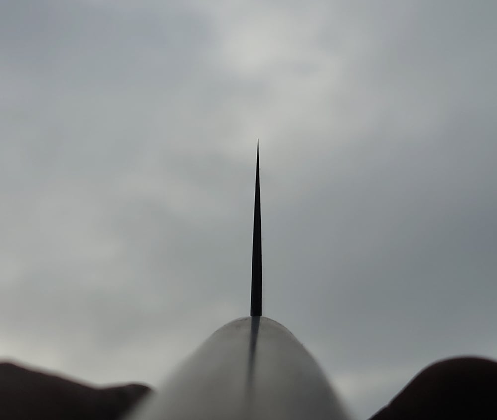 Tall convex thin grind more towards laser